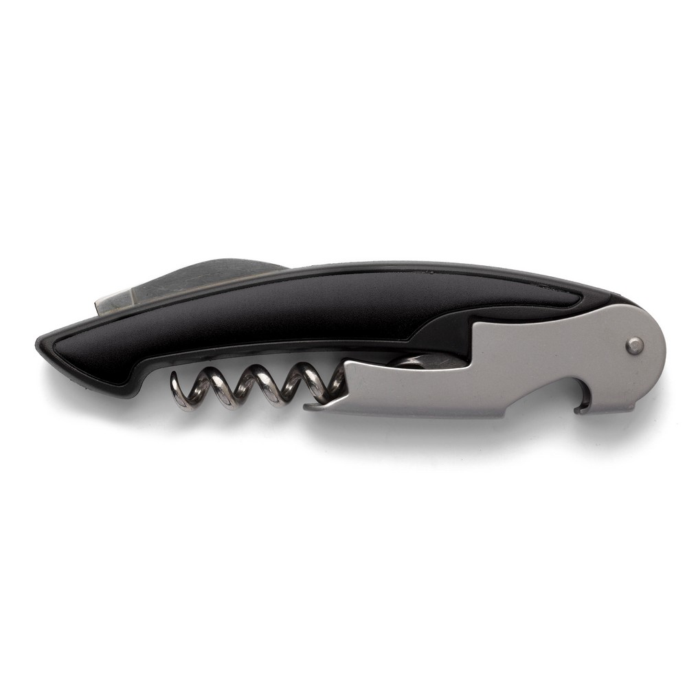 Entdecken Sie das Premium-Kellnermesser, das nicht nur die Kunst des Servierens verfeinert, sondern auch Ihre Marke auf elegante Weise präsentiert. Mit ergonomischem Design und hochwertigen Materialien aus ABS, Aluminium und Edelstahl ist es ein praktischer Begleiter, der den Alltag Ihrer Kunden erleichtert. Dank präziser Lasergravur und lebendigem Tampondruck bleibt Ihr Logo stets im Fokus.